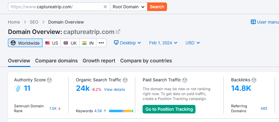 When we started SEO for Capture A Trip, the website was generating only ~5,000 organic visits per month. Most of this traffic was coming to the homepage, driven primarily by the brand name and a handful of limited keywords.